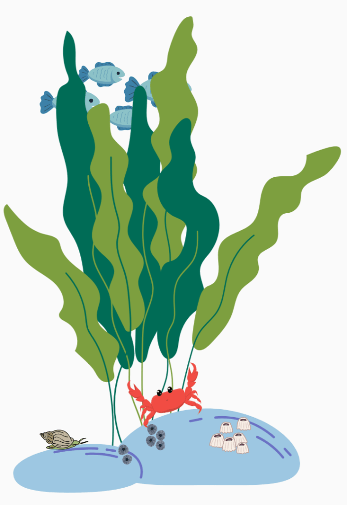Kelp forests provide important habitats for many marine species. They act like underwater jungles, offering shelter and food for a variety of fish, invertebrates, and other sea creatures. Smaller animals, including juvenile fish species, use the kelp to hide from predators, while others find food in the kelp itself. These forests also serve as nurseries, where young fish and other marine animals can grow and develop safely before venturing out into the open ocean. Without kelp, many species would struggle to find the protection and resources they need to thrive.